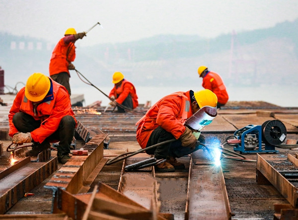 4日上午8時30分,位于長江北岸G3銅陵長江公鐵大橋3號墩的施工現(xiàn)場,上百名橋梁建設(shè)者正在進(jìn)行施工平臺的鋪設(shè)和完善,以及鋼護(hù)筒的插打作業(yè)。現(xiàn)場塔吊林立,焊花四濺,一派繁忙的景象。中鐵大橋局G3銅陵長江公鐵大橋項(xiàng)目部一分部黨支部書記趙懿告訴記者,目前大型吊船、履帶吊、塔吊、旋挖鉆機(jī)等大型設(shè)備已經(jīng)到位,“2022年,我們計(jì)劃實(shí)施橋墩鉆孔樁、承臺、墩身等施工,年度計(jì)劃投資10億多元。”