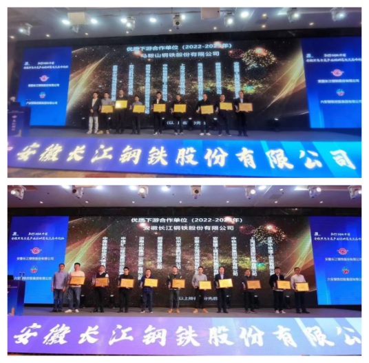 3月27日下午,通馳商貿(mào)公司受主辦方邀請參加了由長江鋼鐵和上海鋼聯(lián)聯(lián)合主辦的“2023鋼鐵中國·安徽黑色金屬產(chǎn)業(yè)鏈高峰論壇”,現(xiàn)場被馬鞍山鋼鐵股份有限公司、安徽長江鋼鐵股份有限公司分別授予“優(yōu)質(zhì)下游合作單位”榮譽稱號。