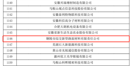 根據(jù)《高新技術企業(yè)認定管理辦法》和《高新技術企業(yè)認定管理工作指引》有關規(guī)定,銅陵市綜交新型路面材料有限責任公司順利通過安徽省2024年第二批“高新技術企業(yè)”認定。