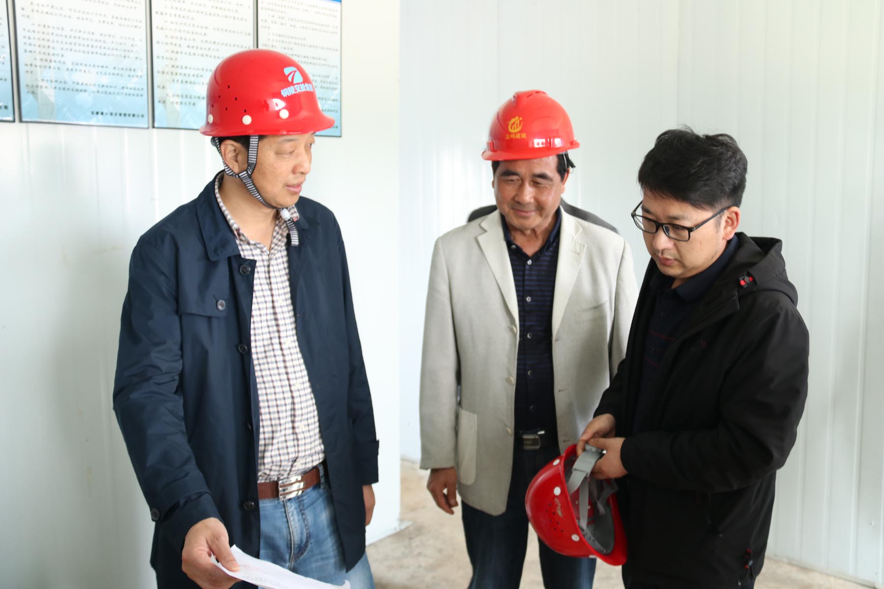 章新華一行首先來到項目施工現(xiàn)場查看項目施工情況,聽取工程進度以及安全文明施工等有關(guān)情況匯報,并就項目管理及風險防控有關(guān)事項與相關(guān)人員進行交流。