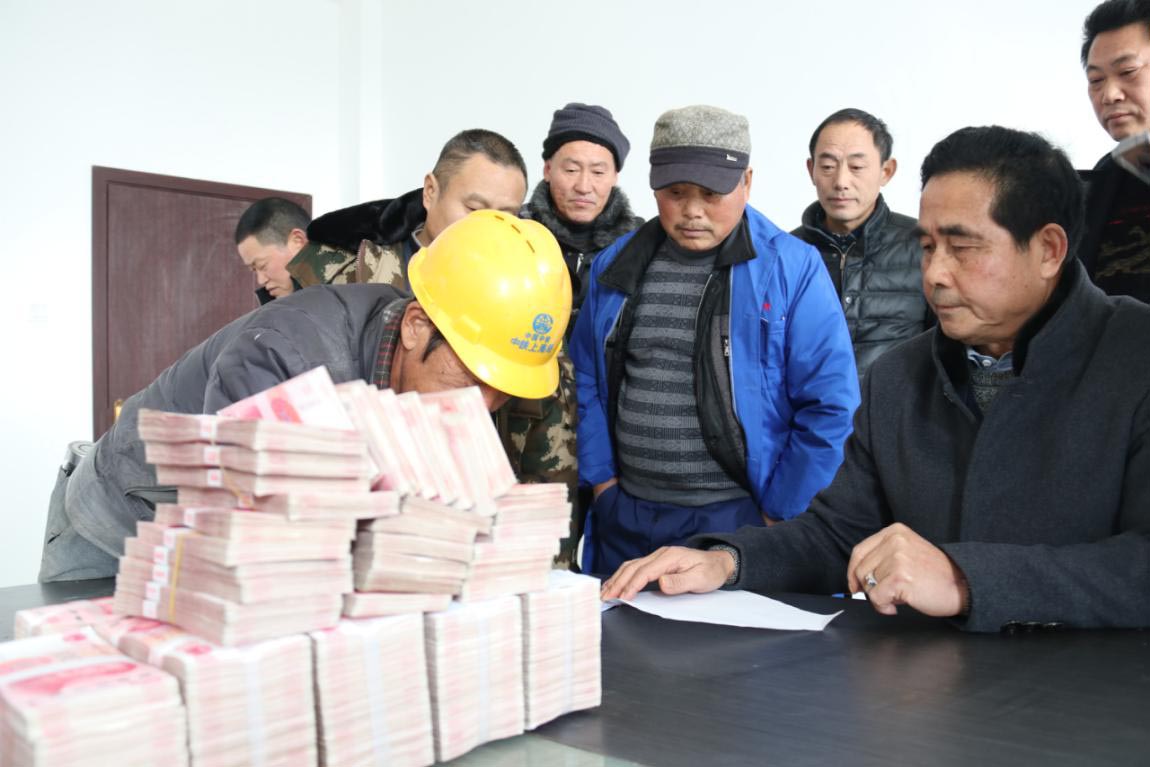 為進一步做好年底農(nóng)民工工資年清欠工作,1月19日下午,集團公司工程部協(xié)同當(dāng)?shù)嘏沙鏊?,赴G347湯溝收費站項目現(xiàn)場,現(xiàn)場指導(dǎo)農(nóng)民工工資發(fā)放,保障100多萬元農(nóng)民工工資精準、安全發(fā)放。
