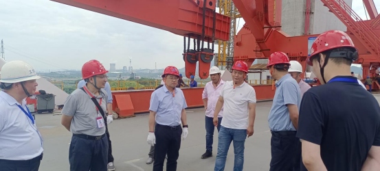 龍道寧一行先后前往G3公鐵橋項(xiàng)目起點(diǎn)、北岸智慧梁場、4號(hào)主墩、南北錨碇施工現(xiàn)場及項(xiàng)目終點(diǎn),實(shí)地查看了施工進(jìn)度情況,詳細(xì)了解了項(xiàng)目概況及施工推進(jìn)過程中的重難點(diǎn),并現(xiàn)場給與指導(dǎo)意見。