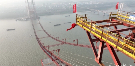 11月30日,由市交投集團(tuán)投資建設(shè)、中鐵大橋局承建的G3銅陵長(zhǎng)江公鐵大橋最后一個(gè)貓道門(mén)架安裝完畢,為大橋貓道拼上最后一塊“拼圖”。在陽(yáng)光的照耀下,貓道懸于空中,將兩岸錨碇、主塔相連,如同色彩鮮艷的“空中走廊”。不久后,大橋首根纜索就能順著牽引繩飛渡長(zhǎng)江。