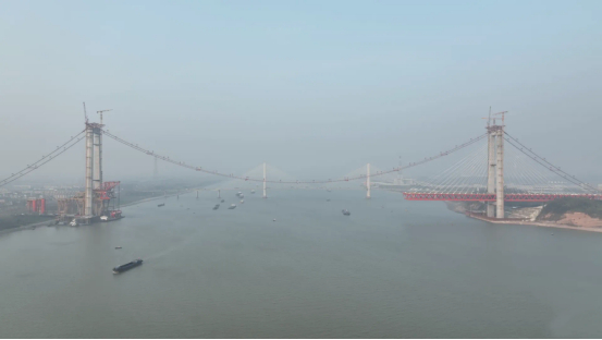 自10月20日先導(dǎo)索過(guò)江,到11月30日最后一個(gè)門(mén)架安裝完成,大橋貓道在45天內(nèi)安全完工,為大橋纜索系統(tǒng)的施工創(chuàng)造了良好條件。未來(lái),一股股纜索將在其上完成“穿針引線(xiàn)”,為大橋主梁過(guò)江提供關(guān)鍵支撐。