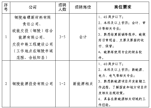 二、具體崗位要求