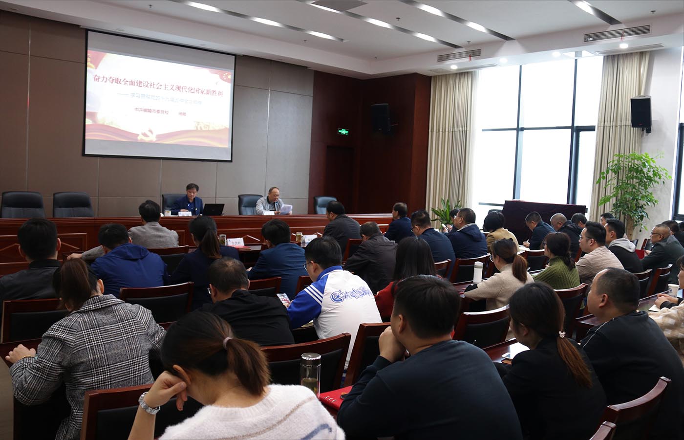 為深入學(xué)習(xí)貫徹黨的十九屆五中全會精神,11月19日下午,集團公司邀請市委黨校楊陟教授作專題輔導(dǎo)講座。公司黨工委班子、中層以上管理人員、黨員以及入黨積極分子參加學(xué)習(xí)活動。