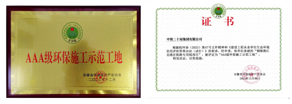 日前,從安徽省環(huán)境保護(hù)產(chǎn)業(yè)協(xié)會(huì)傳來佳訊,銅陵港江北港區(qū)鐵路專用線項(xiàng)目中鐵二十局施工管段喜獲安徽省2023年度“AAA級(jí)環(huán)保施工示范工地”榮譽(yù)稱號(hào)。